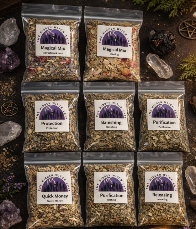 Each Magical Mix is thoughtfully created using herbs traditionally associated with specific intentions, making them a versatile and powerful addition to any magical practice. Whether you’re building a spell kit, restocking ritual supplies, or exploring new workings, these sample packets offer flexibility and variety.