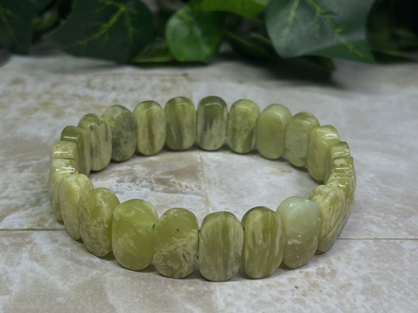 14mm Xiuyan Jade bangle bracelet that fits 7.5 inch wrist.