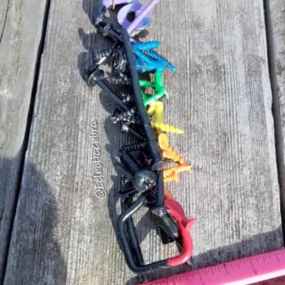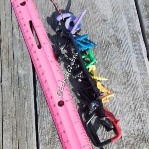 OOAK, handmade by me….wall hanging….rainbow light with a touch of darkness! ~I do my best to round edges but I use real hardware in my works-not responsible for pokes! ~Measurements are in photos and are a huge portion of the listing. ~My items are shipped safely, I do not package frilly, I am not Neiman Marcus=what you see it what you get..