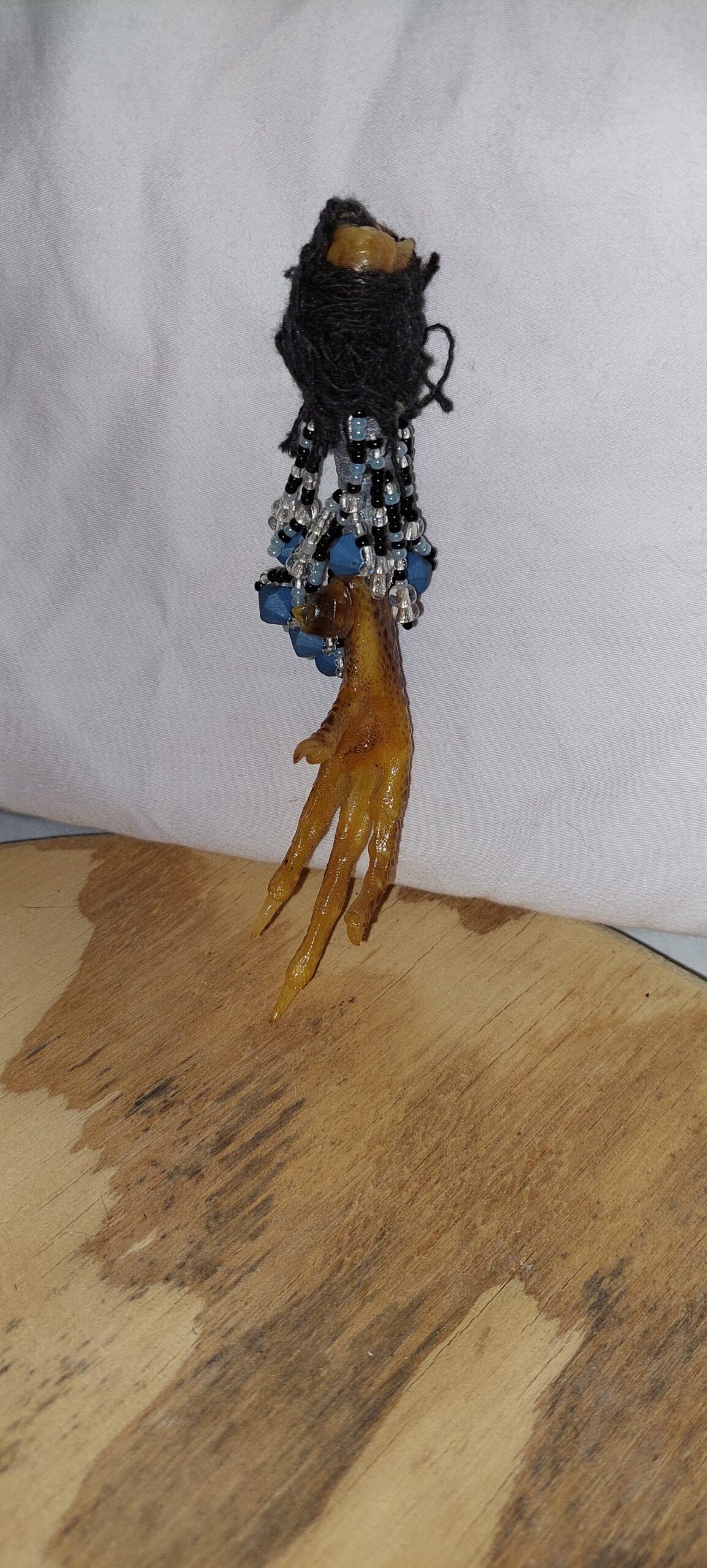 A chicken foot is a traditional folk charm used in rootwork and conjure practices for protection, luck, and spiritual power. It is carried or displayed as a talisman to ward off negative energy, enhance spiritual workings, and attract blessings. All chicken feet are humanely sourced. This foot measures approx. 6″L.