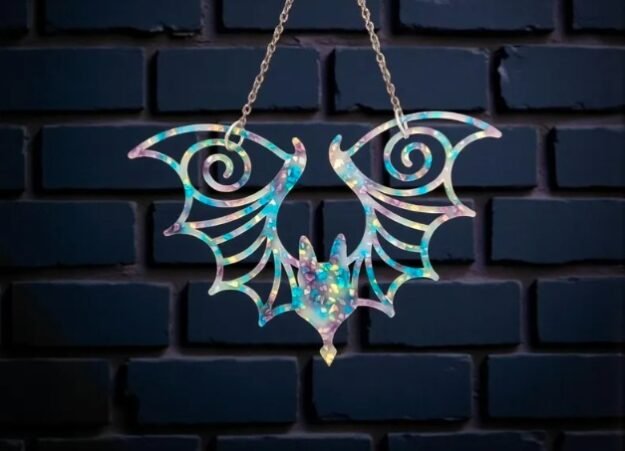 Add dark elegance to your home with this laser-cut acrylic bat wall hanging! Featuring intricate design, this gothic bat decor is perfect for Halloween, witchy home decor, or spooky year-round style.