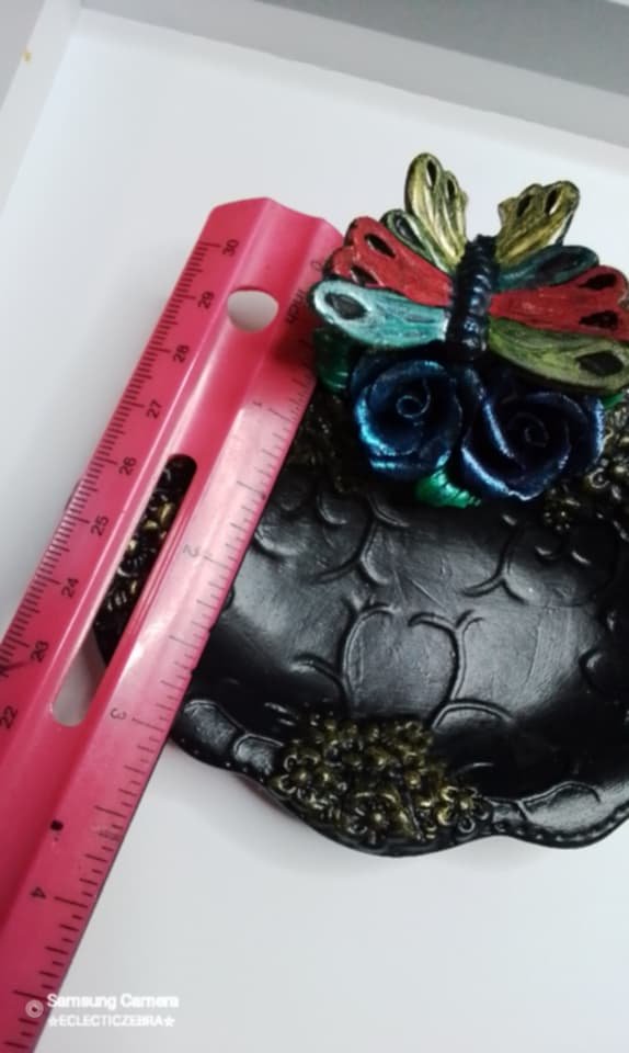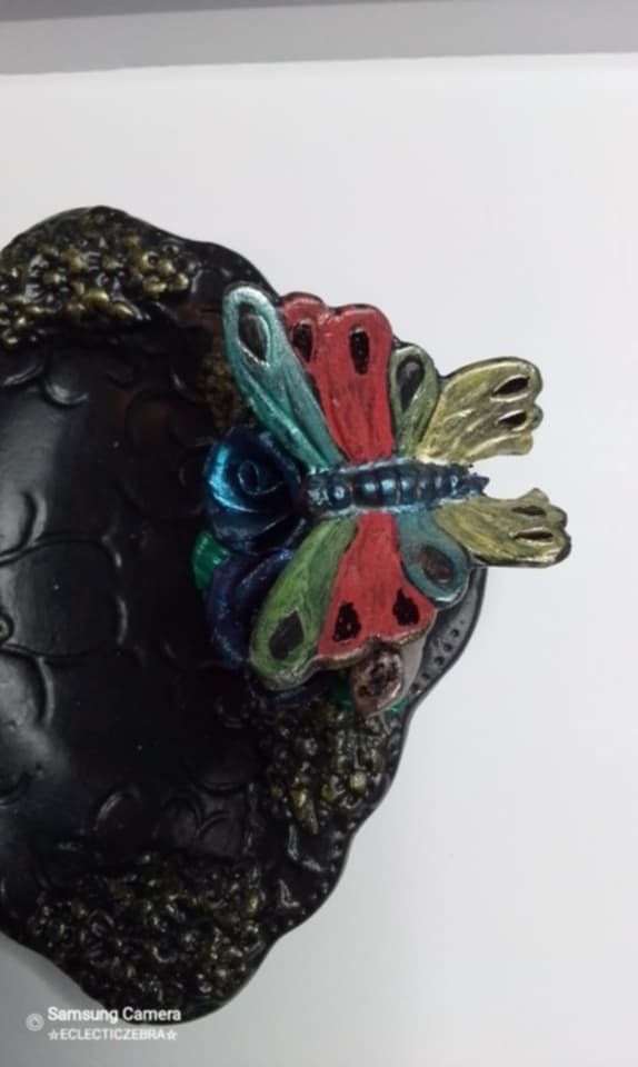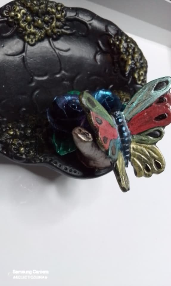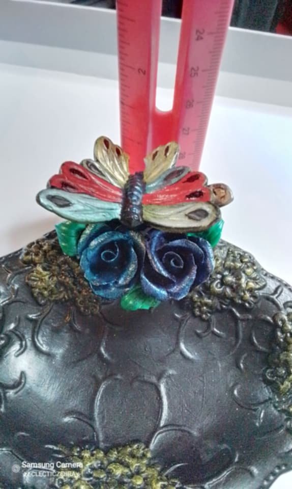 This was an ugly faded pink and white ceramic piece…so, I had to funkify it!Â