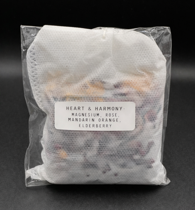 Fill your tub with warm water. Place the sachet directly into the bath and allow the minerals and botanicals to infuse. As you soak, take a few moments to set your intention or repeat the affirmation. Dispose of sachet after use.
