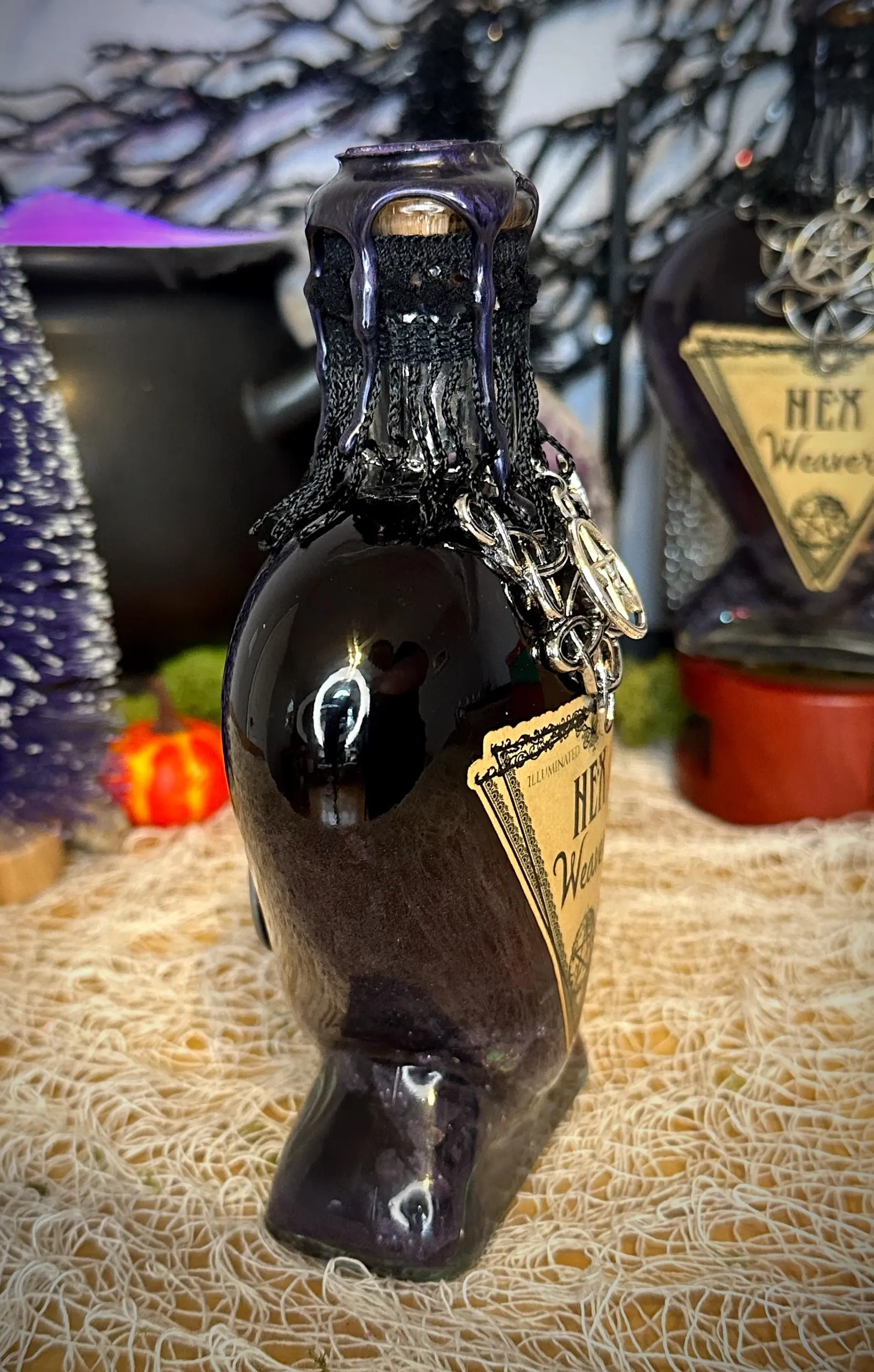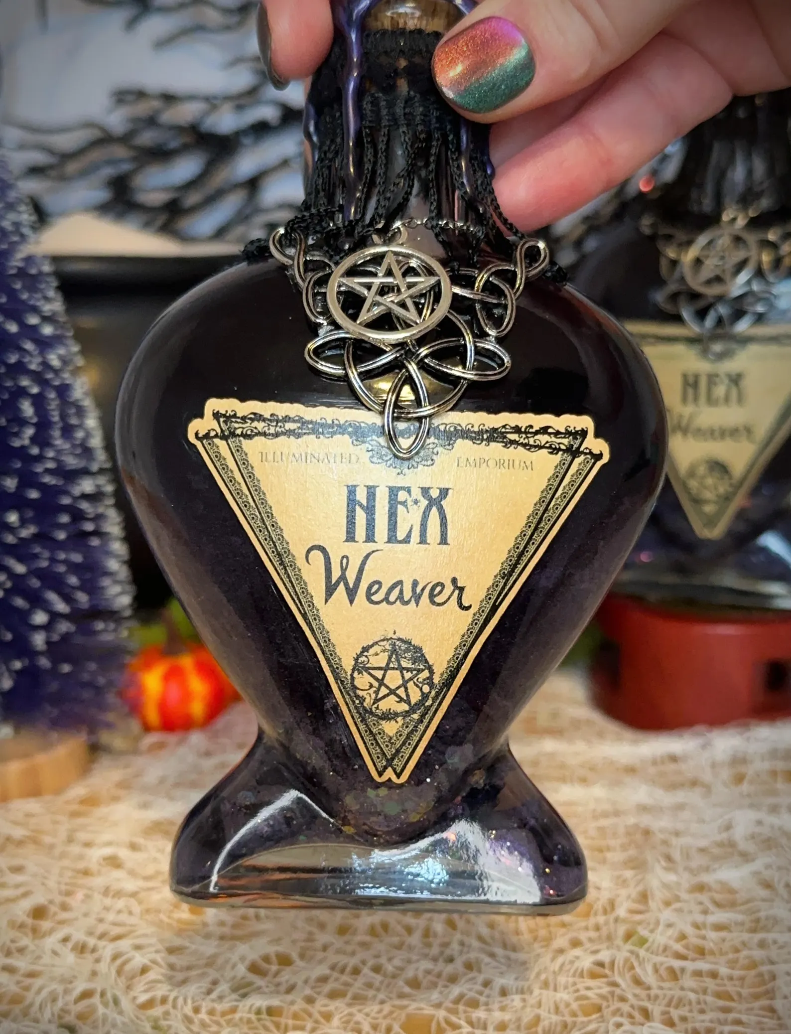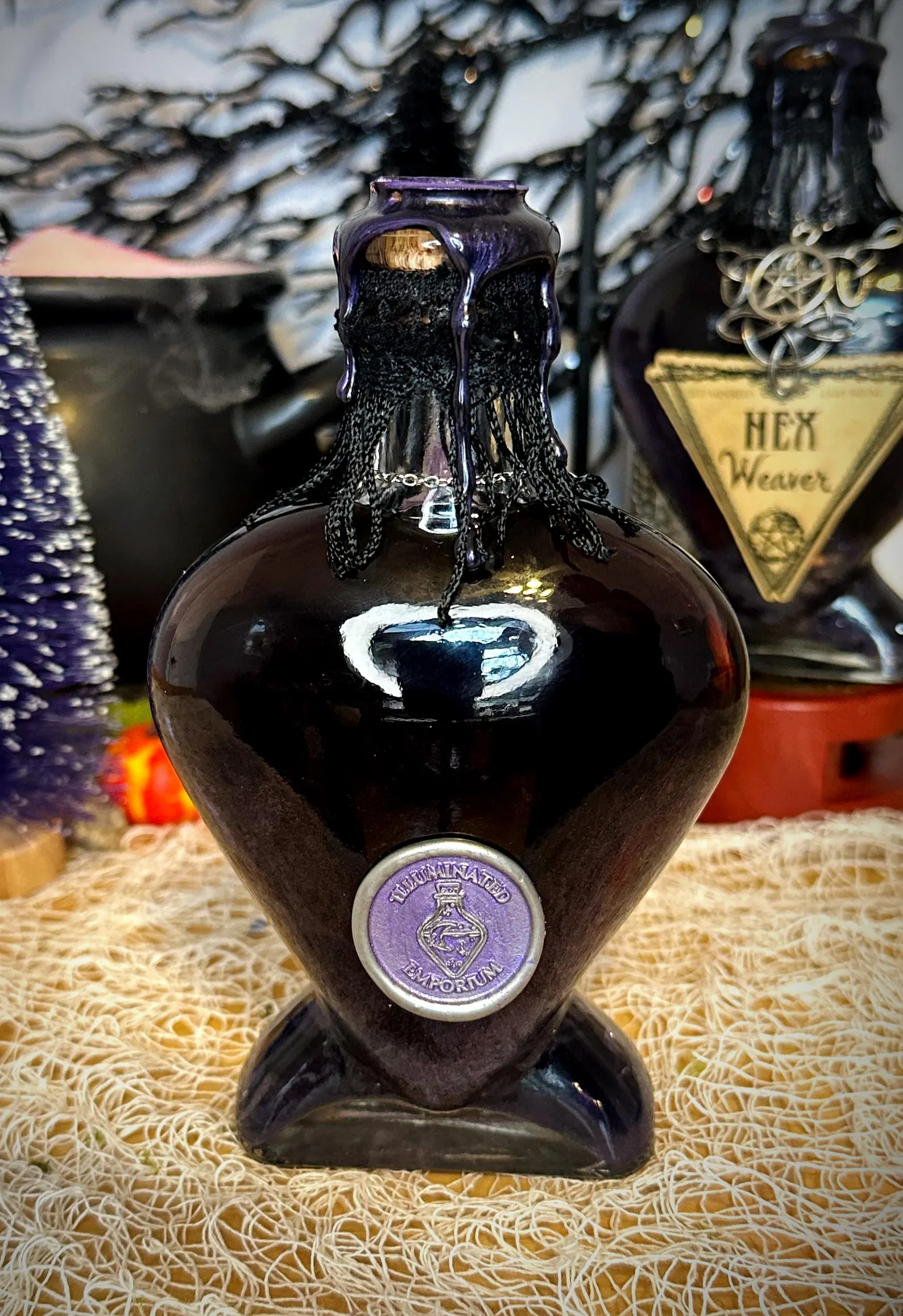 Hex Weaver Potion is a striking apothecary piece designed for practitioners focused on warding, binding, and protective magic. While housed in a heart-shaped vessel, this is not a potion of romance—it is a visual reminder of the boundaries we set and the elemental strength required to maintain them.