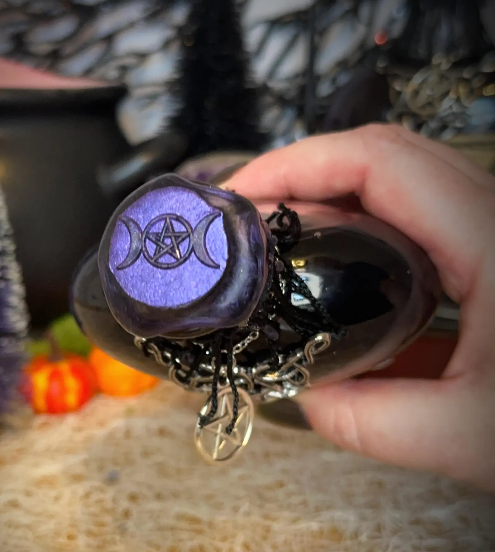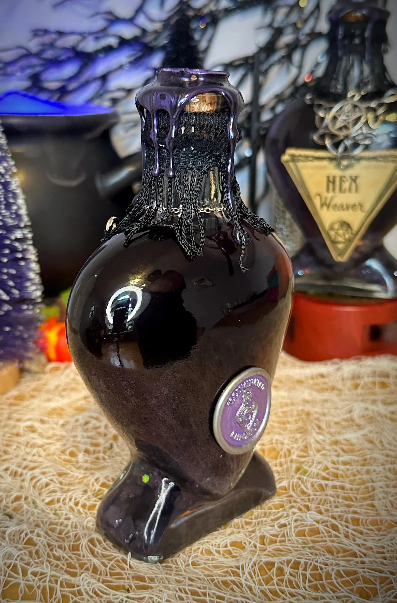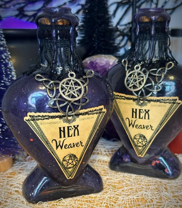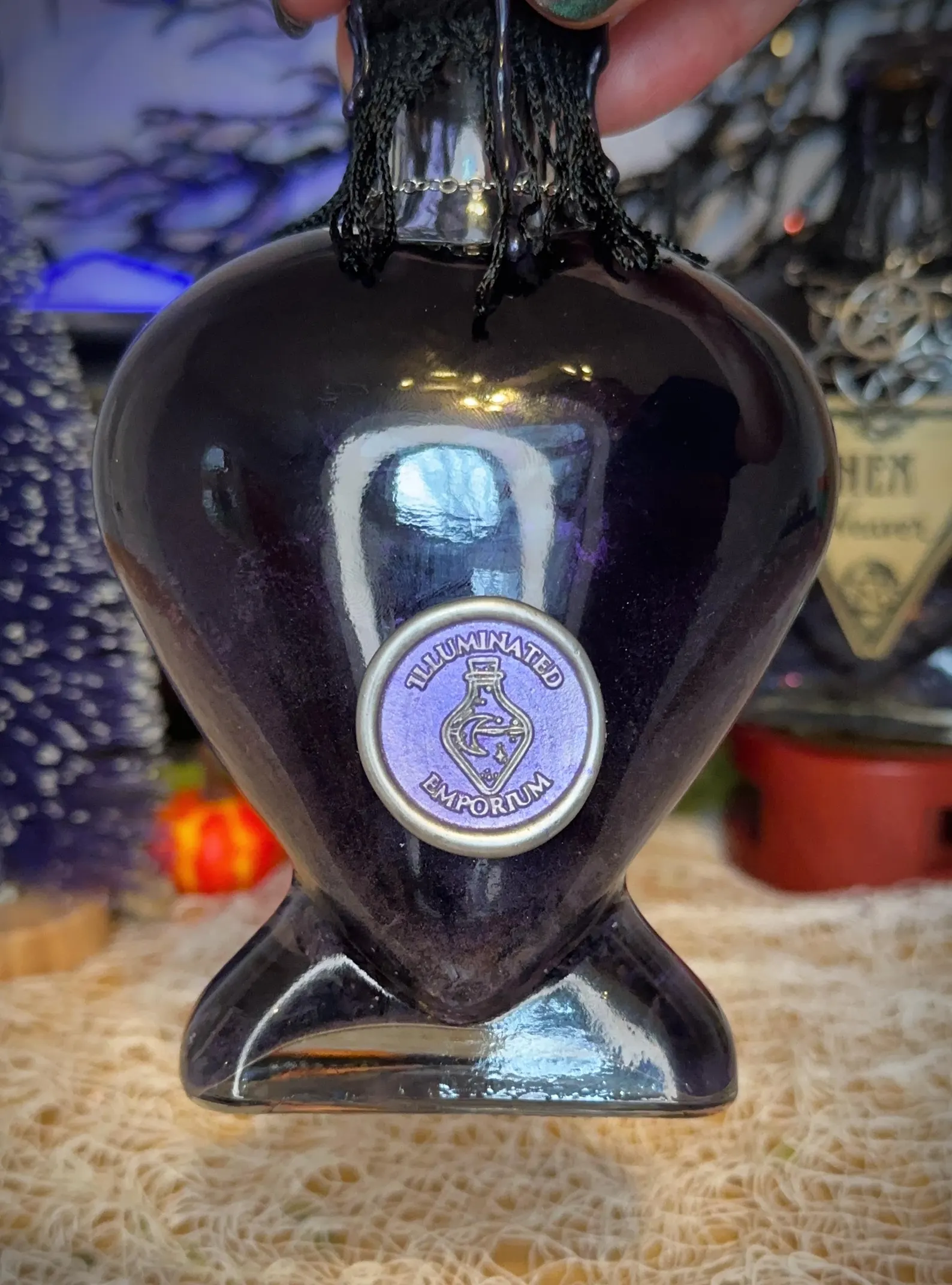 Hex Weaver Potion is a striking apothecary piece designed for practitioners focused on warding, binding, and protective magic. While housed in a heart-shaped vessel, this is not a potion of romance—it is a visual reminder of the boundaries we set and the elemental strength required to maintain them.