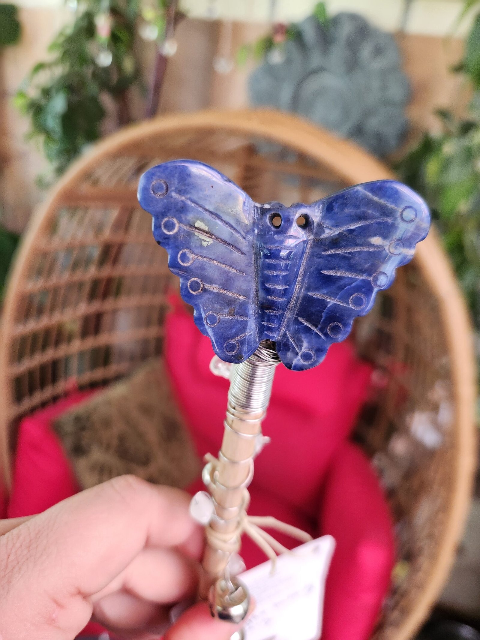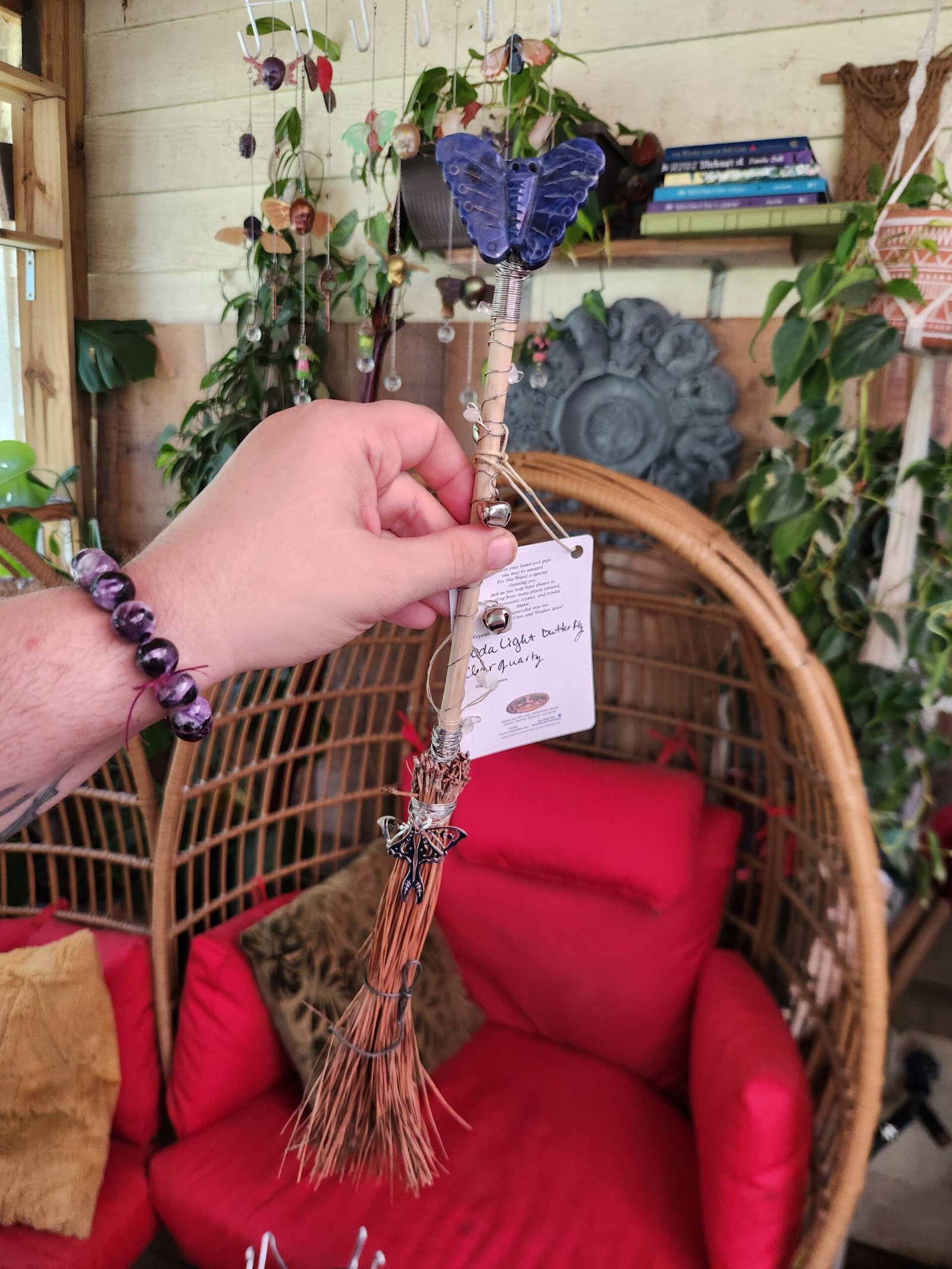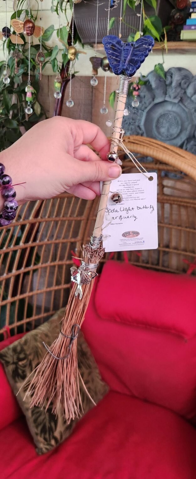 This beautiful Sodalite crystal butterfly adorns the top of this magical alter broom.