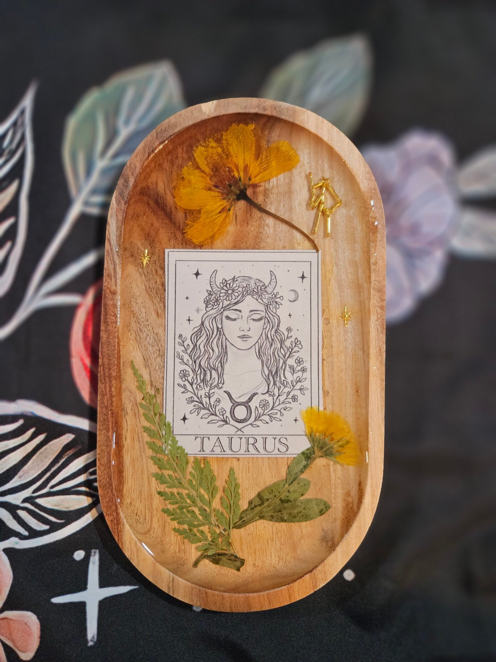 Grounded, patient, and ruled by Venus — this Taurus trinket tray is a beautiful reflection of your steady, sensual energy. Crafted with intention, each tray captures the Taurus spirit: strength, abundance, and a love for life’s little luxuries.